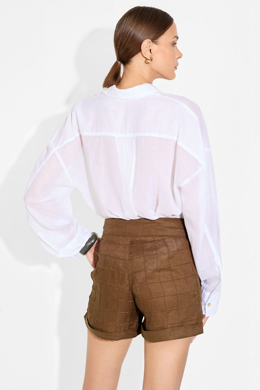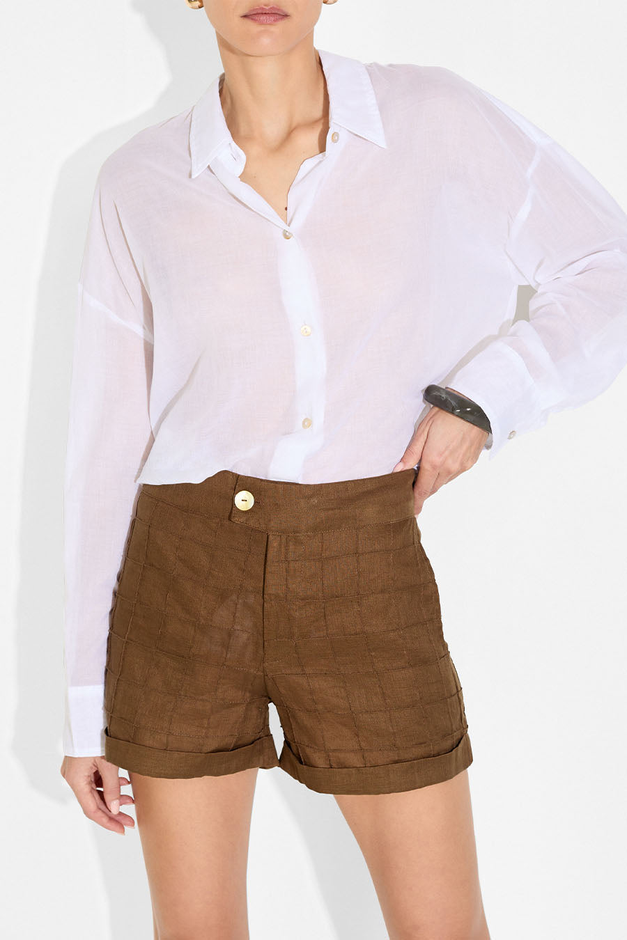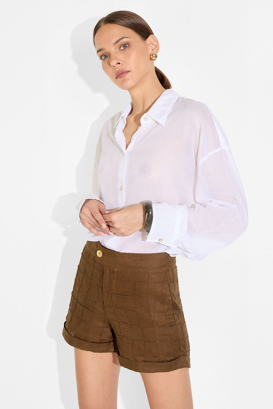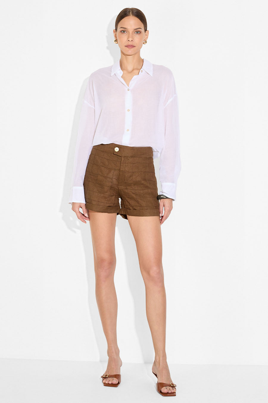 Crafted from linen, the Carla Shorts features zipper, handmade pleats details throughout and shell button. at front It's perfect for your everyday layered looks.