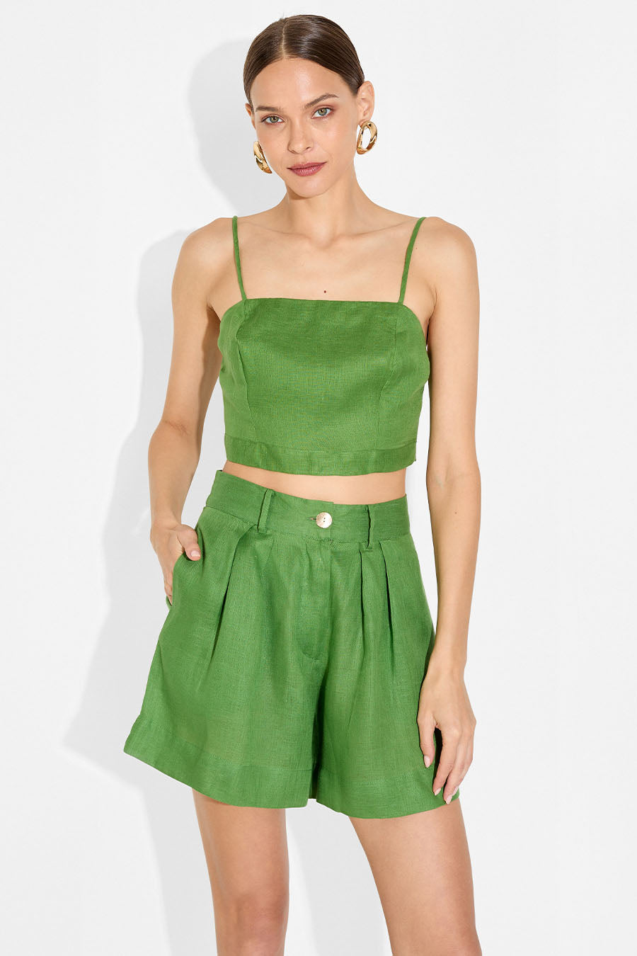 Made from breathable linen, the Rina Shorts masterfully combine comfort and style. Featuring a sleek front zipper and charming shell buttons, these shorts are perfect for effortlessly elevating your everyday layered looks. Whether dressing up or down, they’re a versatile staple you’ll reach for all season long.