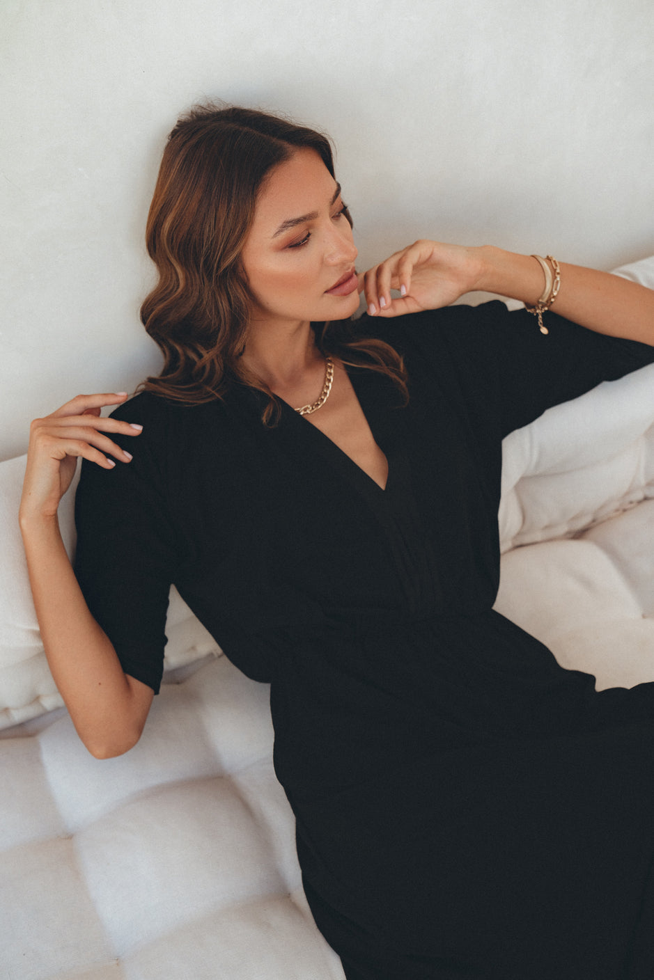 An elegant Maxi Kaftan, fabricated from rayon with V neckline in satin fabric and front slit details. It is the ultimate casual yet chic daytime outfit.