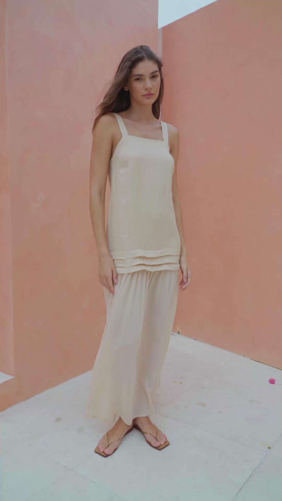 The Serena Maxi Dress combines a breathable linen upper bodice with a soft, gathered rayon lower panel for effortless movement and a feminine silhouette. Designed with adjustable shoulder straps, it features subtle horizontal pleating above the transition seam, creating a smooth flow into the full, maxi-length skirt. Light, airy, and versatile, this linen and rayon maxi dress is perfect for warm days, resort styling, vacation outfits, beach getaways, and elevated everyday wear.