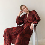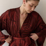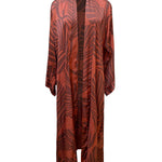 Elevate your style with our exclusive kimono, showcasing a unique handmade palm tree print. With long sleeves and a sleek, second-skin feel, it combines effortless comfort with timeless elegance. The perfect cover-up to complement any look in your wardrobe.