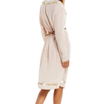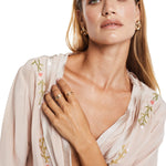 Experience luxury and sophistication with the Yara Kimono, a true masterpiece crafted from 100% silk crepe and meticulously embroidered by local female artisans. Its intricate details around the edges showcase the skill and artistry of the artisans, making each kimono a unique and exquisite piece. The Yara Kimono takes four weeks to create, ensuring that every detail is perfect. This stunning cover-up is a true investment in timeless artisanship.