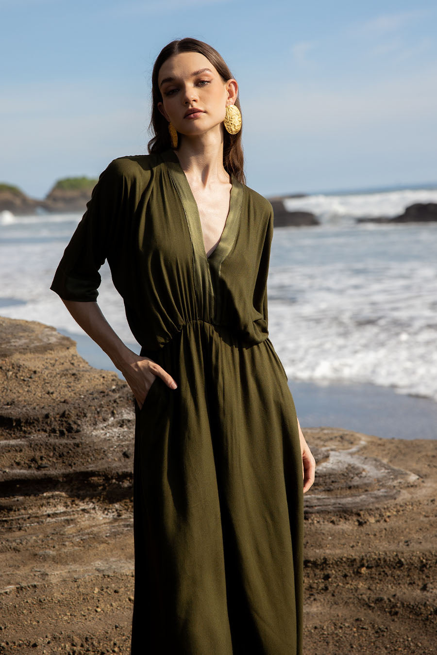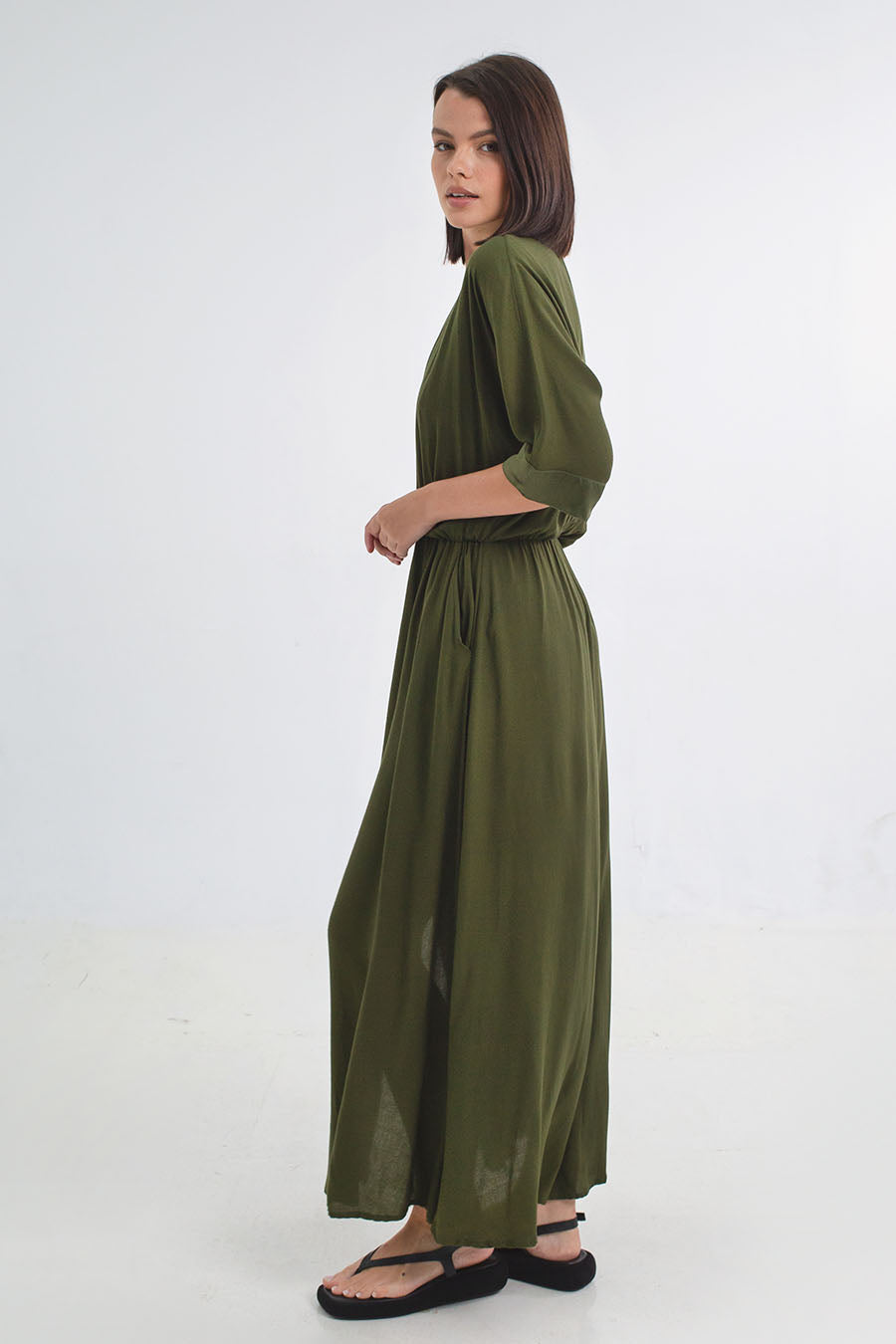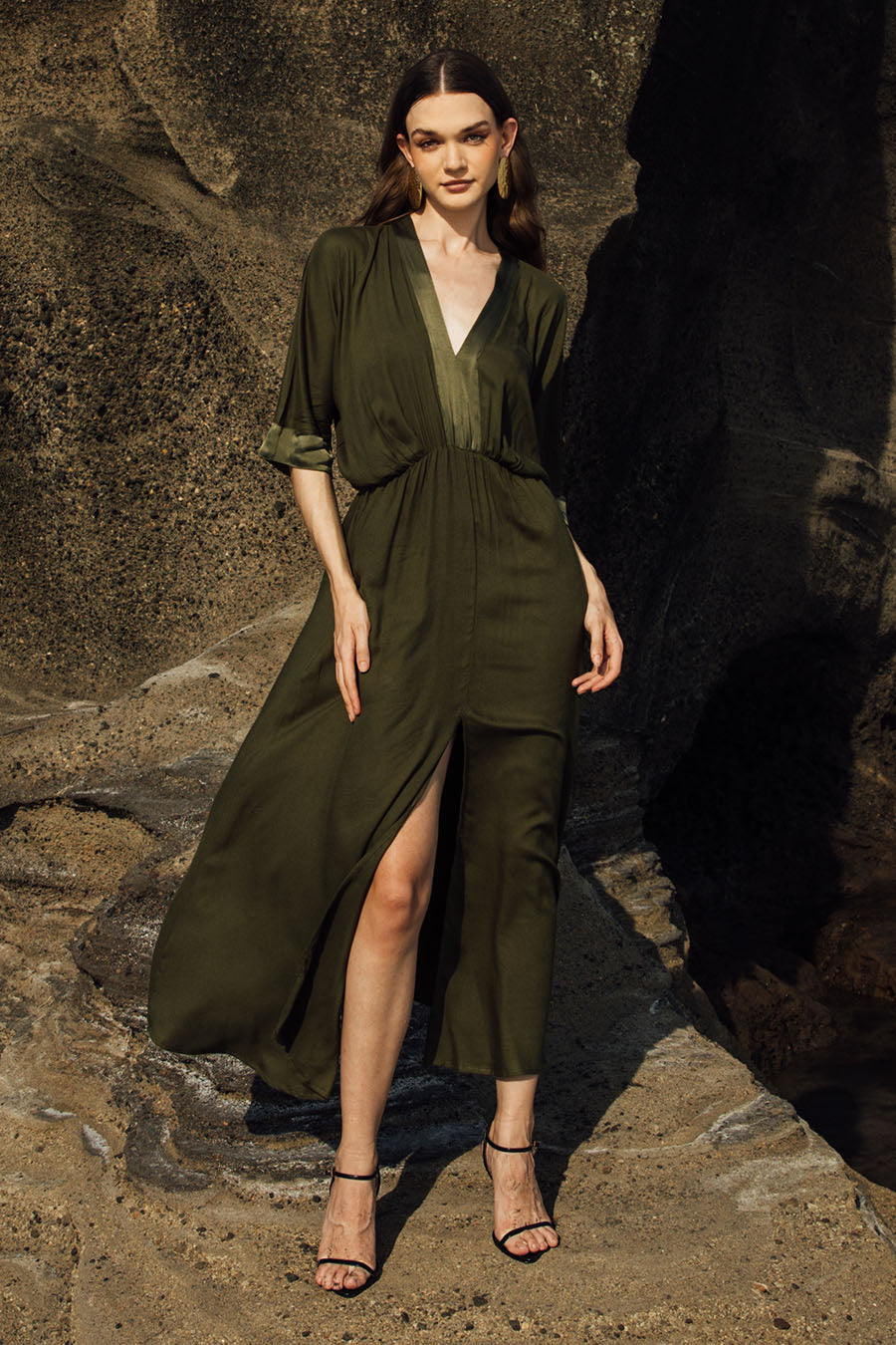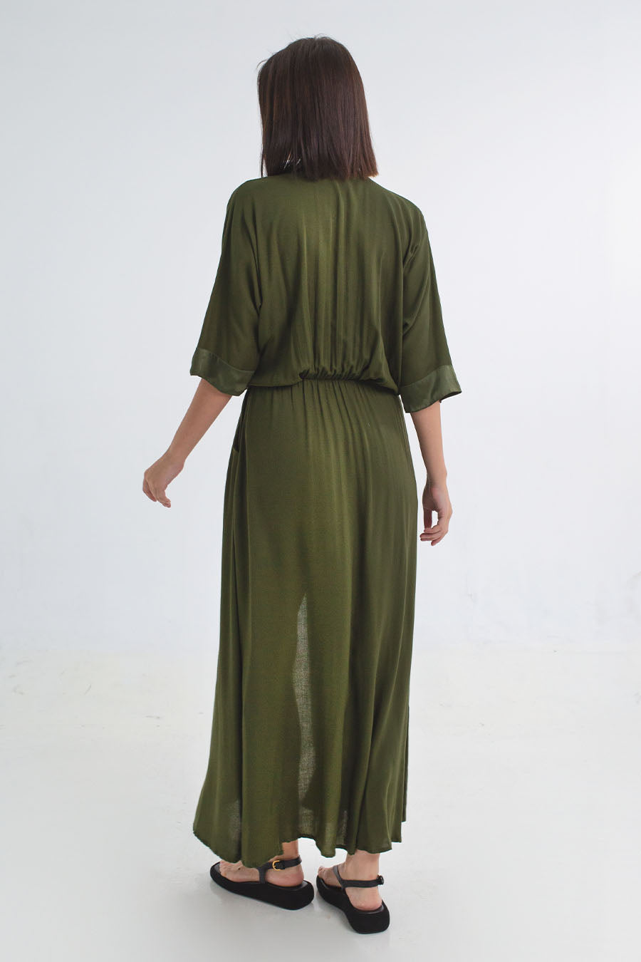 An elegant Maxi Kaftan, fabricated from rayon with V neckline in satin fabric and front slit details. It is the ultimate casual yet chic daytime outfit.