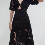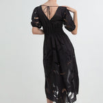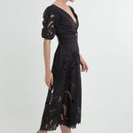 Discover elegance and comfort with our Alya Midi Dress. Crafted in cotton, this Dress features an exquisite Balinese cut-out hand embroidery throughout. It's the perfect style to elevate your wardrobe effortlessly.