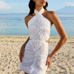 The Ayla Mini Dress is a showstopper, featuring our exclusive handmade cut-out embroidery that adds a bold, artistic flair to its sleek silhouette. With its striking design, this mini dress is the perfect blend of elegance and edge, ideal for making a statement at any occasion, from casual daytime outings to chic evening affairs.