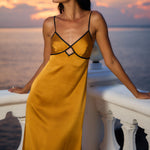 Unveil effortless elegance with the Luminance Maxi Dress Camisole, crafted from luxurious silk satin that drapes beautifully with a soft, silky feel. This stunning piece features a flattering and seductive neckline, designed to enhance your silhouette with a touch of allure.