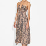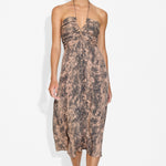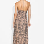 The Freya Midi Dress is a beautifully designed piece, featuring flattering paneling around the bust that can be adjusted to reveal more or less skin, depending on your style. Crafted in our exclusive phyton print with a flowy mid-length skirt, it also includes delicate ruching at the back for a comfortable and enhancing fit. Whether worn to a special event or dressed down with flat shoes for a casual outing, the Freya Mid Dress brings effortless elegance to any occasion.