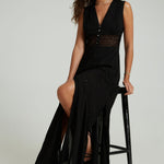 Rafaella Maxi Dress is a definition of classic and elegant. Detailed with different panels and lace trims, this gorgeous maxi dress compliments your feminine shapes. With a center front slit, that gives a sexy touch for your look. This dress is perfect on every special occasion, you will be effortlessly mesmerising anyone arounds you!