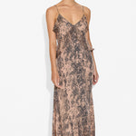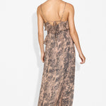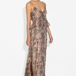 The Sandra Maxi Dress is crafted from viscose, beautifully feminine flowy silhouette. Offered in our exclusive Python Blush print, it features a flattering V-neckline and playful ruffle accents that cascade across the bust, adding effortless charm and subtle allure. Perfect for summer nights dressing up with heels or keeping it casual with sandals.