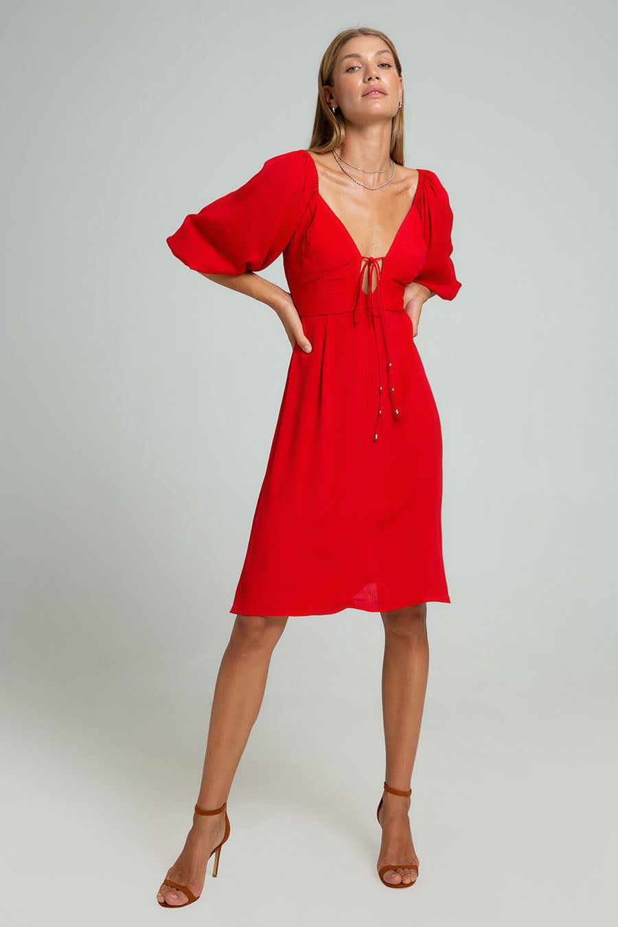 Celine Mini Dress, featuring 3/4 sleeves, slit in the middle for a sexy Brazilian flare and silver metal beads details on the strings. A timeless yet elegant style to add your wardrobe.
