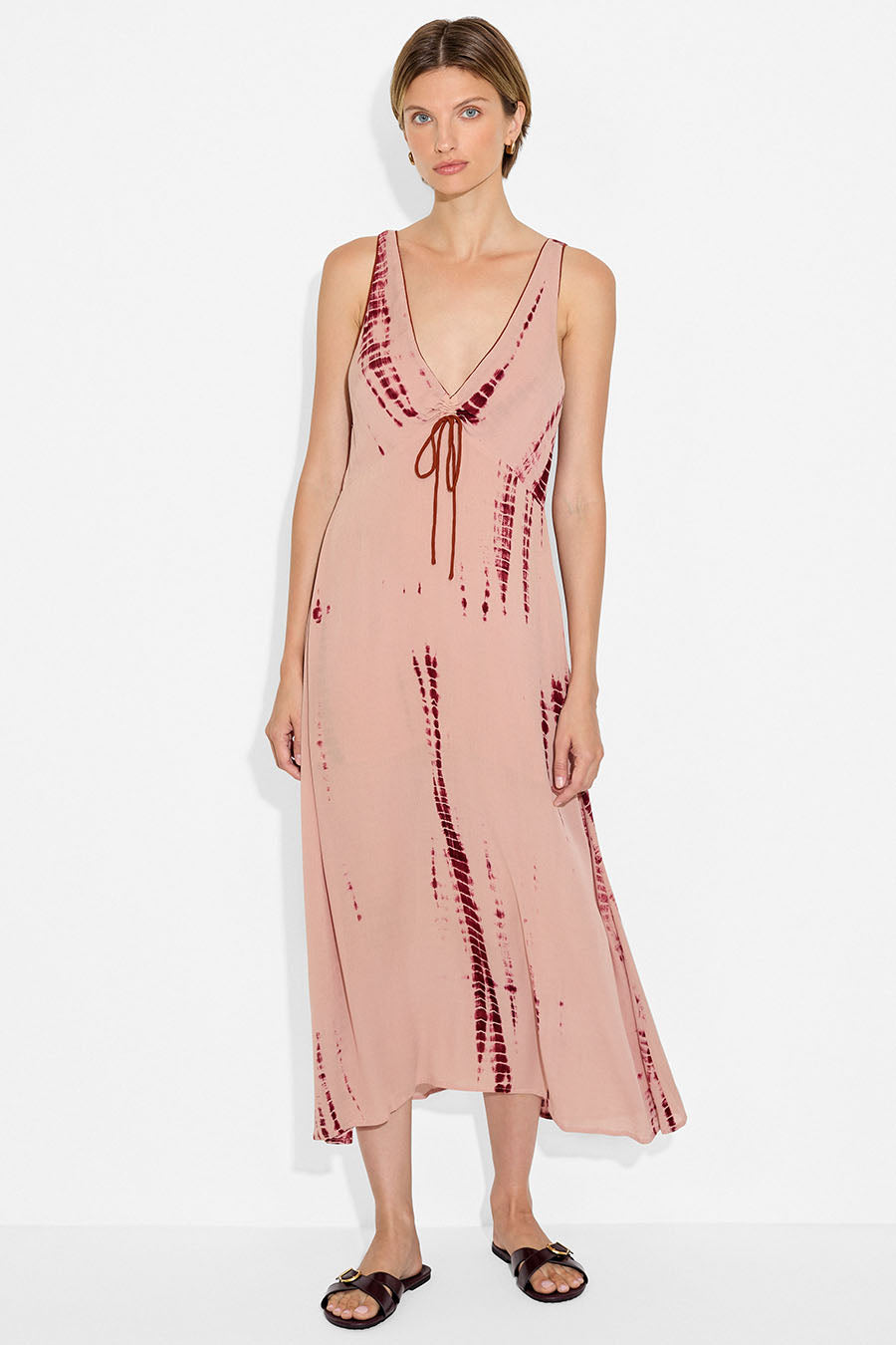 The Cruise Midi Dress features our signature tie-dye hand technique, complemented by a graceful silhouette for a chic, effortless allure. Perfect for any occasion with its refined, relaxed charm.