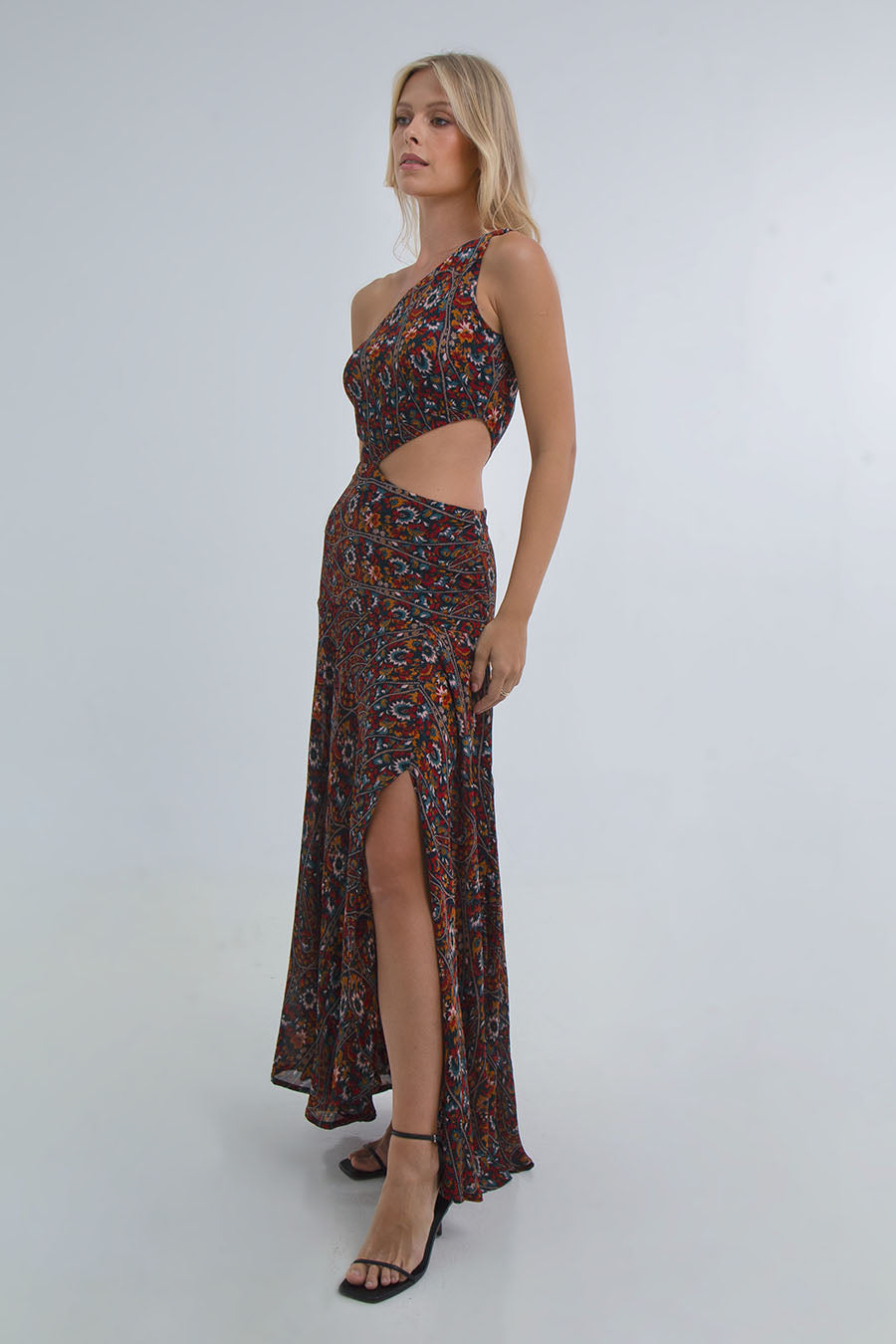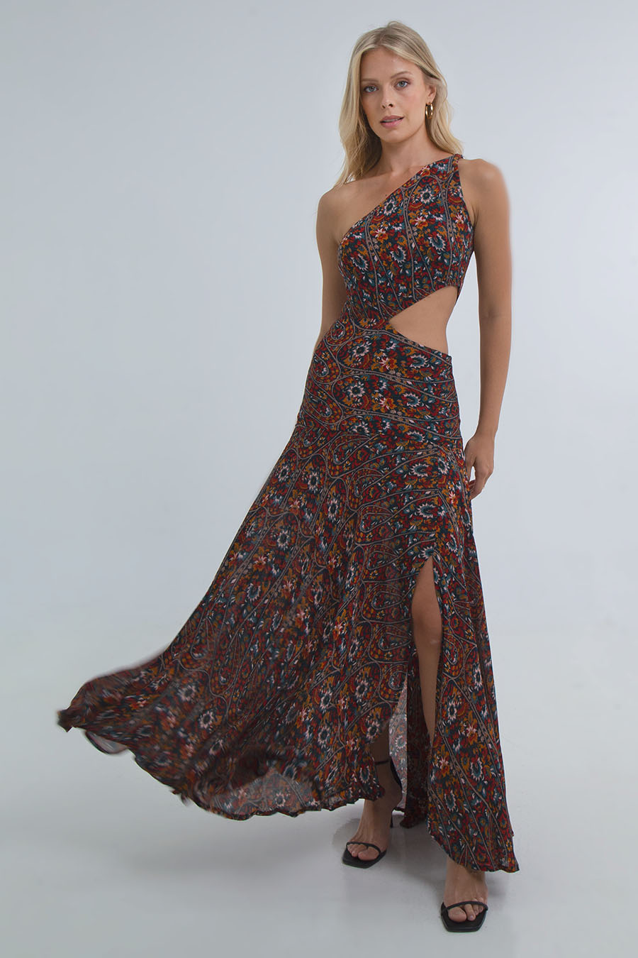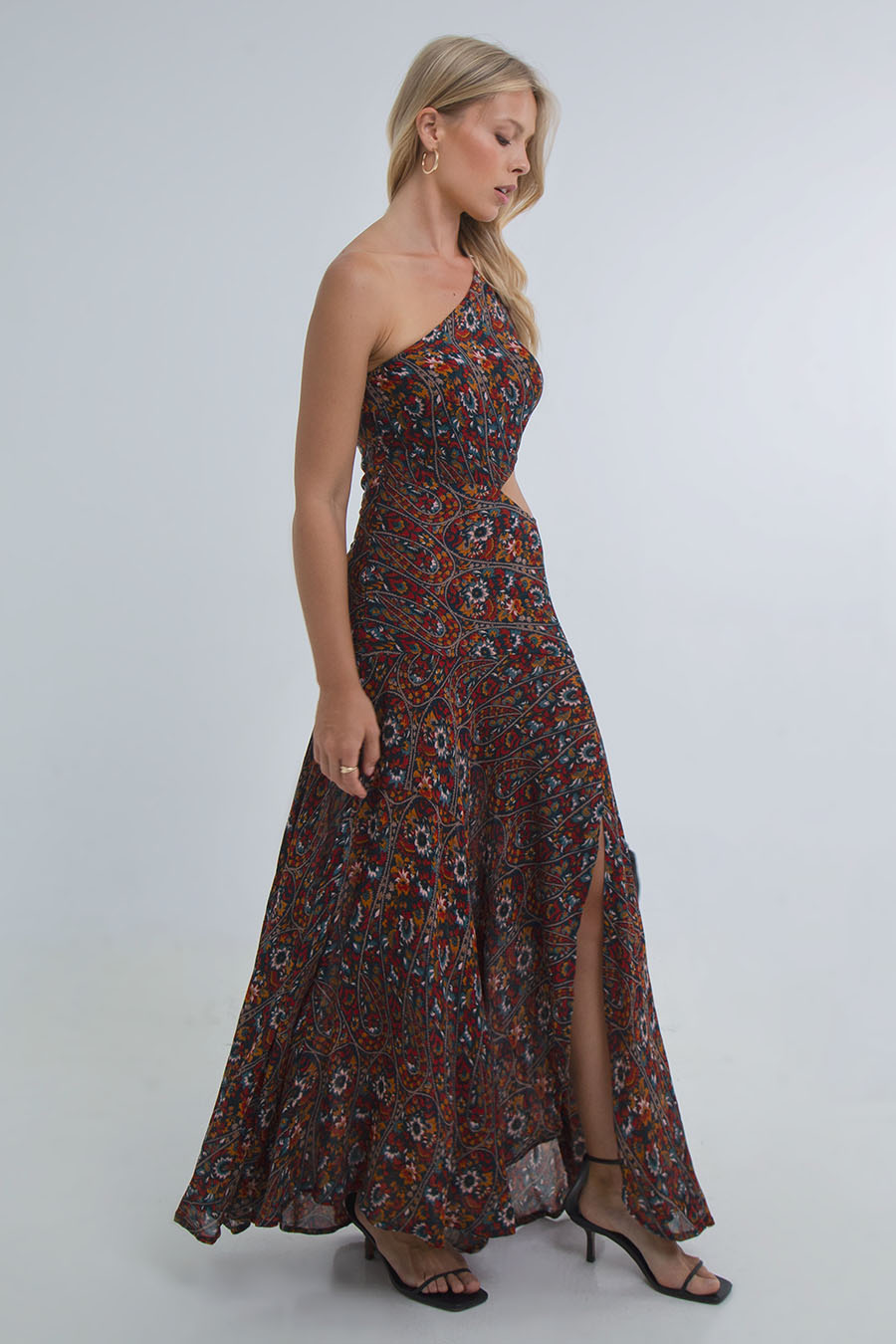 Crafted in rayon, the Louise Maxi Dress features a one-shoulder silhouette, cut-out detail at the waist and a relaxed skirt with slit cut along the leg. Chic yet playful style for your any special occasion.