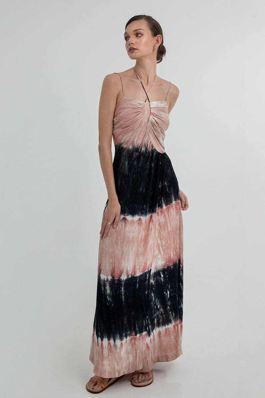 Crafted from rayon, Rina Maxi Dress showcase the handmade tie-dye technique from our unique artisans. The open hole neckline adds a touch of alluring charm, while the adjustable straps allow you to create a perfect fit tailored to your body.