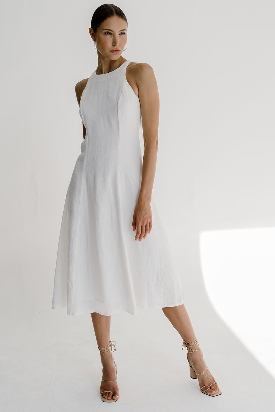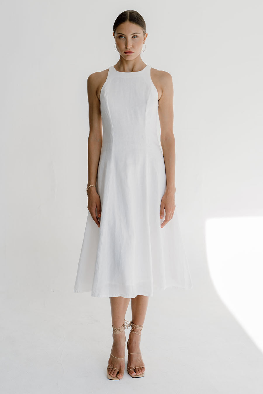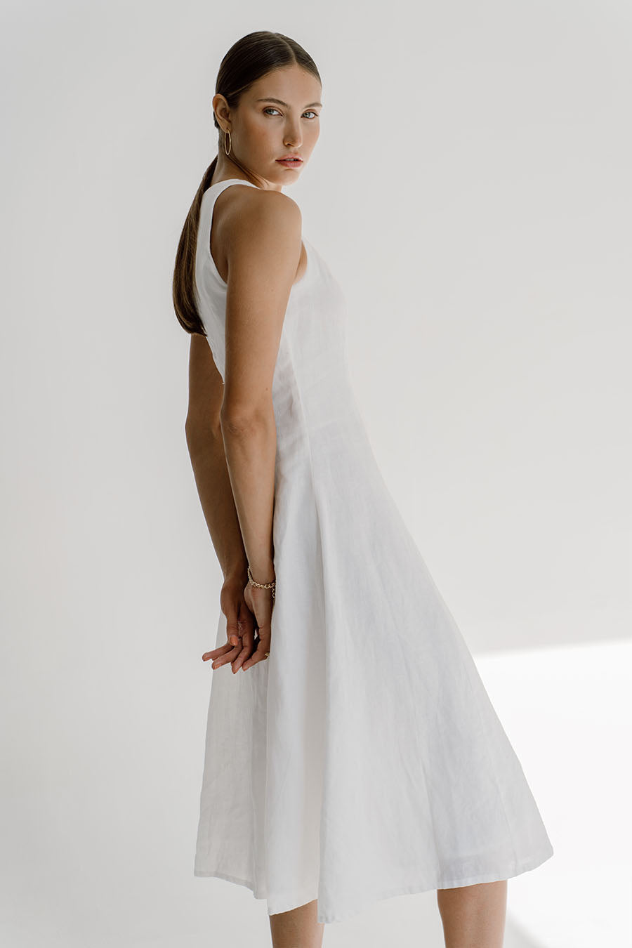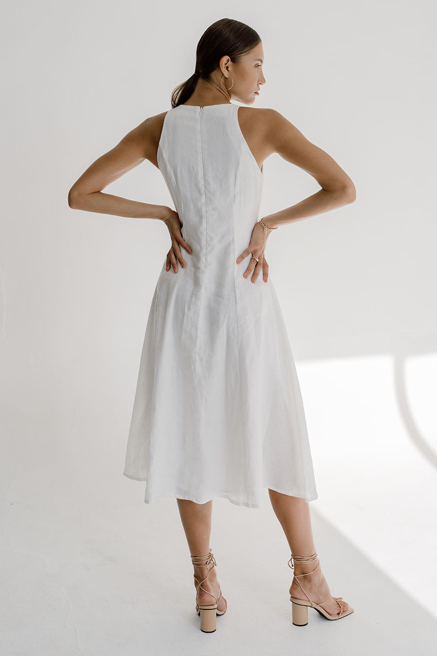 Crafted from linen, zipper at the back and lined .The Savannah Dress has a cut to fit your body with perfection and was designed to make you feel effortless elegant and comfortable.