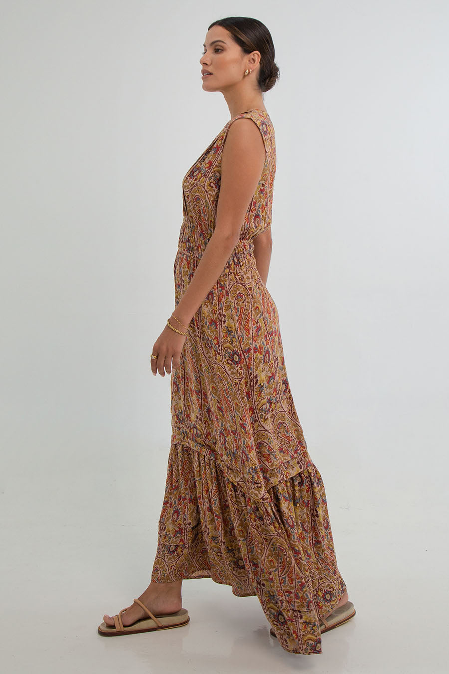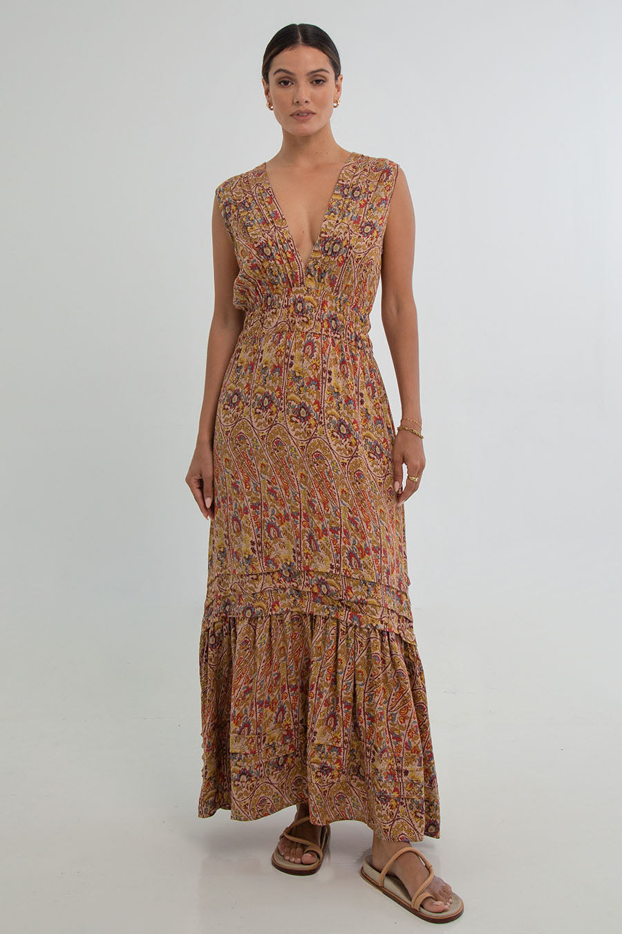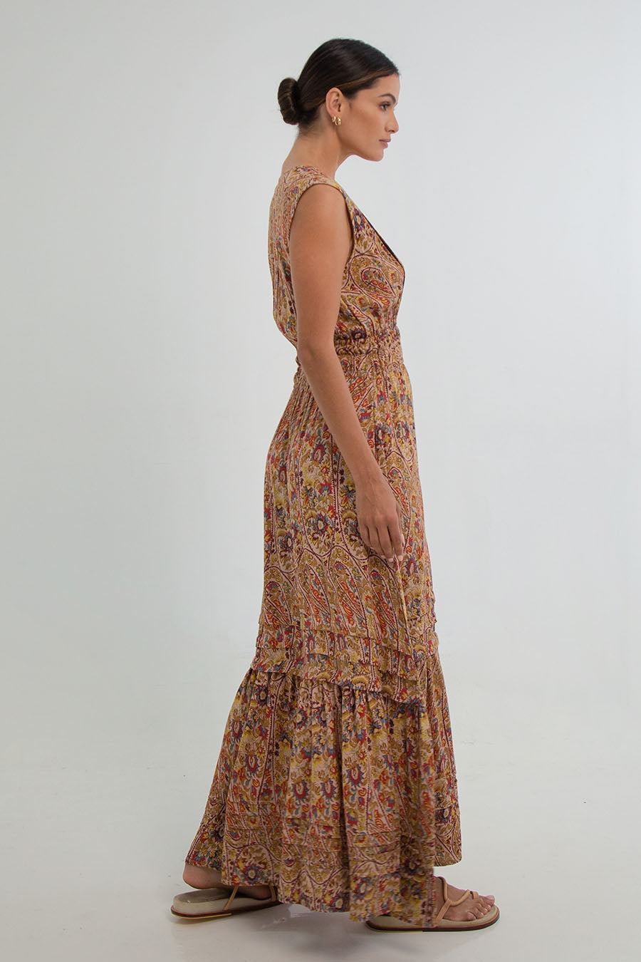 Sienna Dress is the perfect feminine maxi dress. Featuring a slim maxi silhouette ,hand-pleated details around neckline / skirt and waisted elastic for a perfect fit on any body shape.
