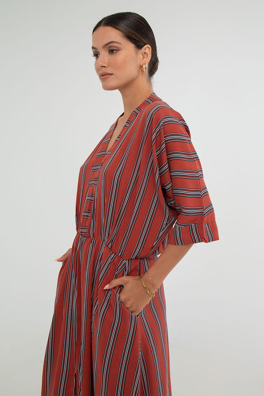 V-neckline in satin fabric,