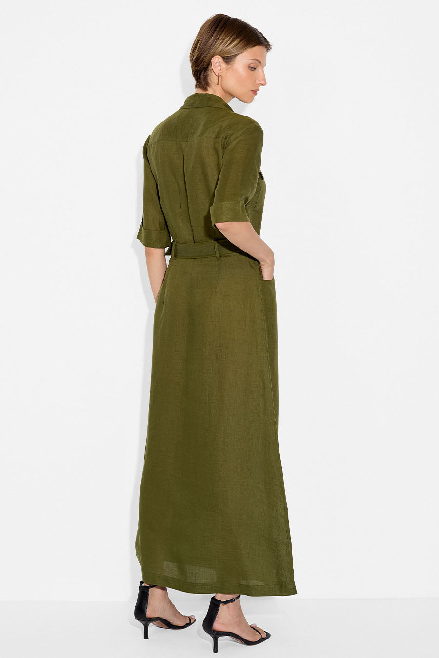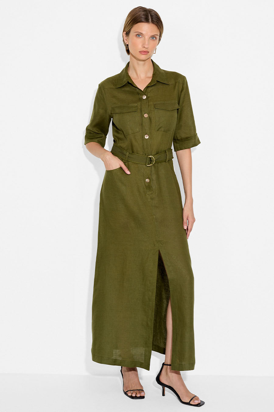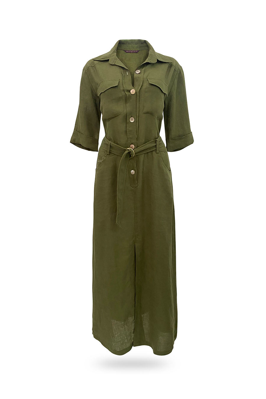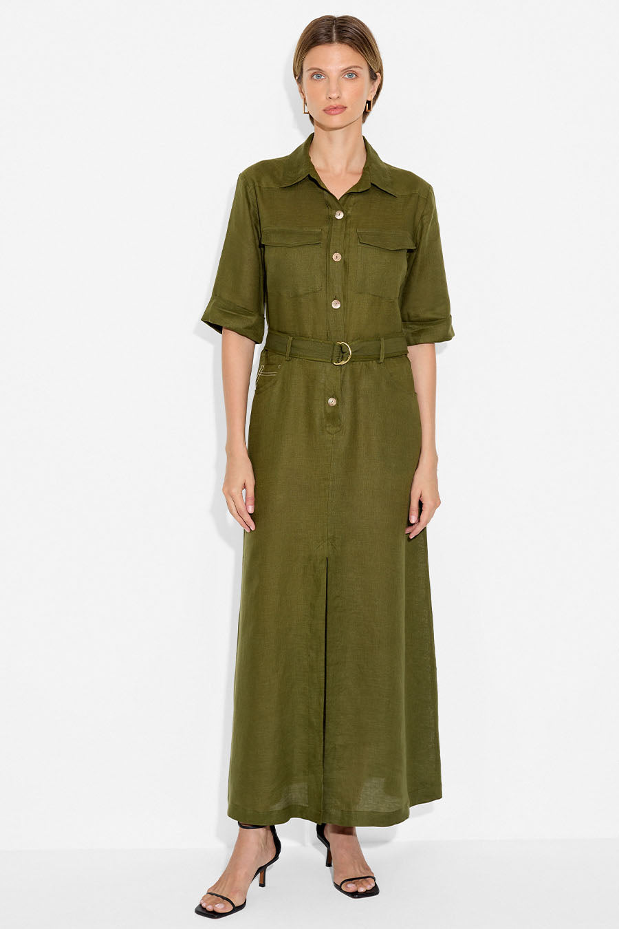 The Victoria Maxi Dress offers timeless elegance, complete with a detachable belt and metal buckle for a flattering, adjustable fit. A perfect blend of style and versatility.