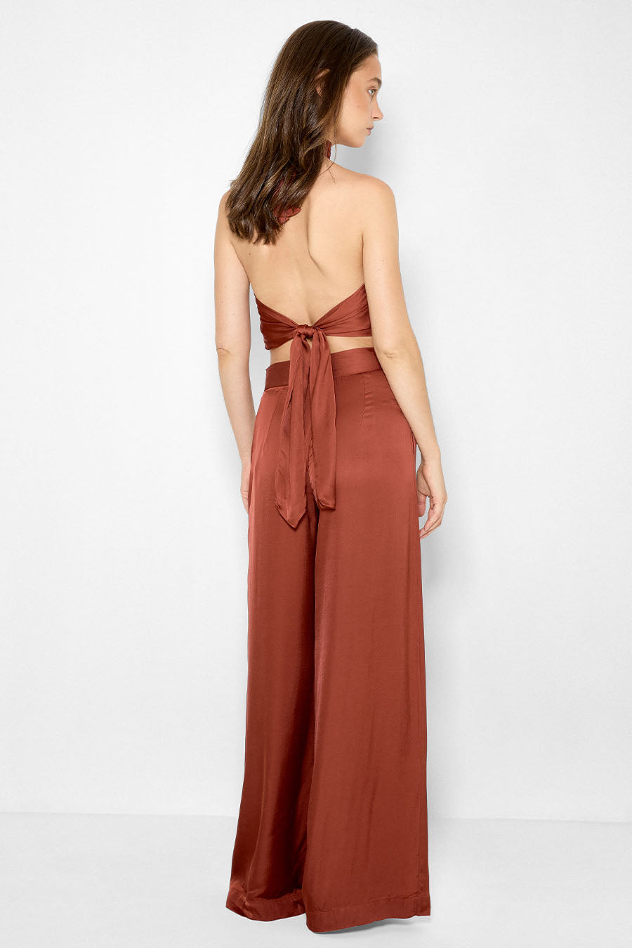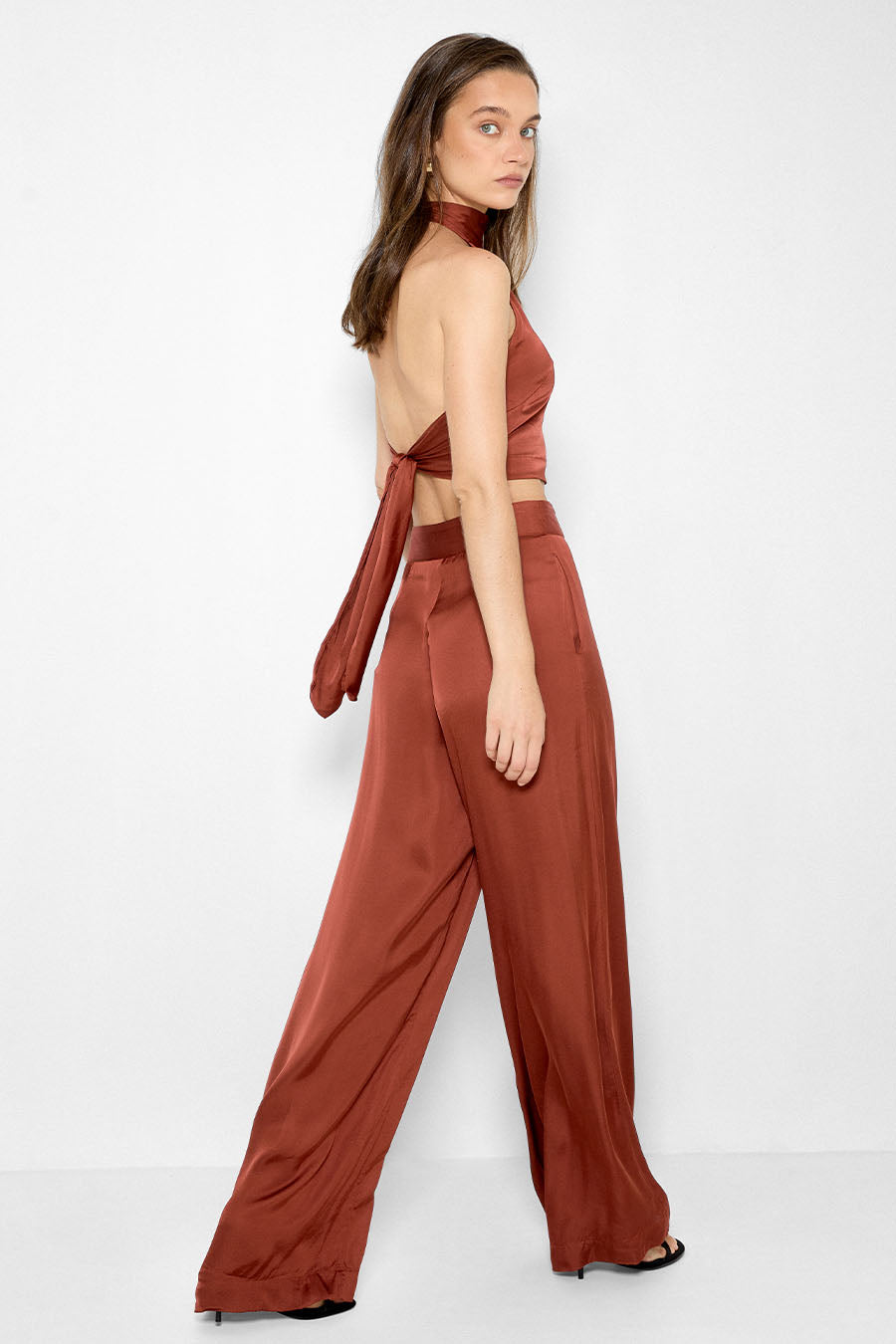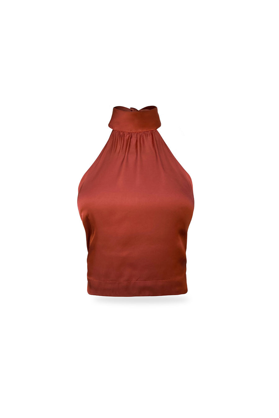 The Cooper Top features a stylish halter neck with an adjustable tie for the perfect fit. Made from silky viscose satin, it adds an elegant touch to any outfit, elevating your look with effortless chic.