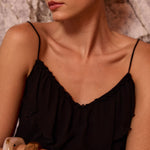 the Jade Top features a soft, flowy silhouette that moves beautifully with you. A delicate V-neckline is framed by subtle ruffle detailing, adding a touch of feminine charm.