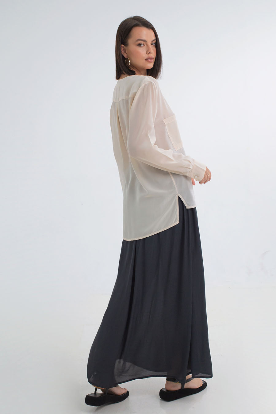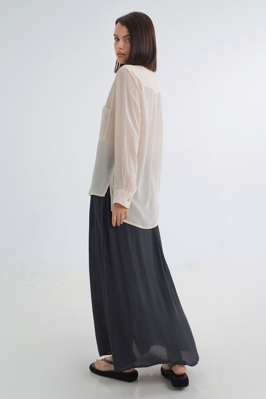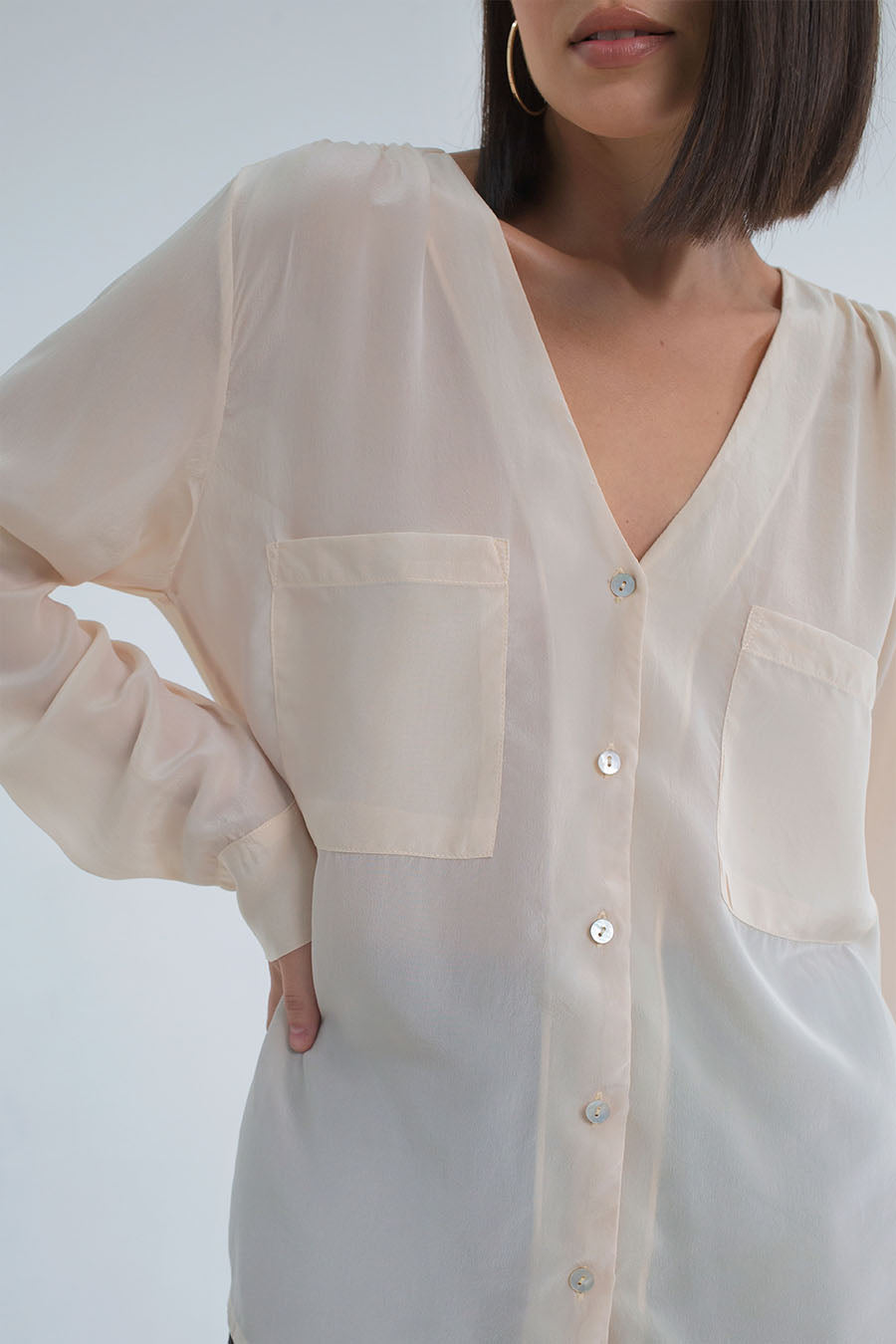The Aquarella shirt is a must-have in any wardrobe. Crafted from silk crepe, this shirt features two pockets, long sleeves and shell buttons detailing that adds a touch of sophistication to its classic cut .