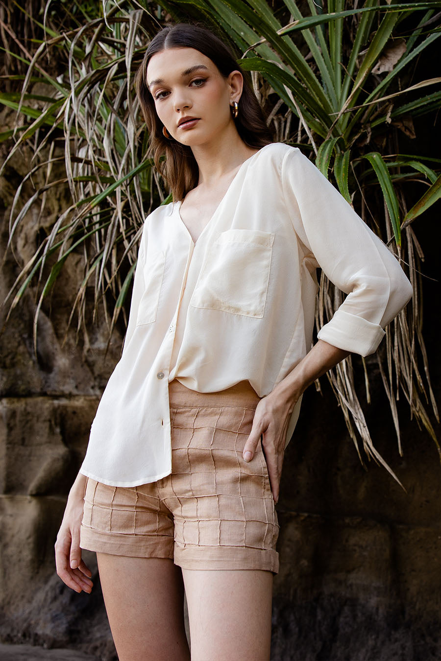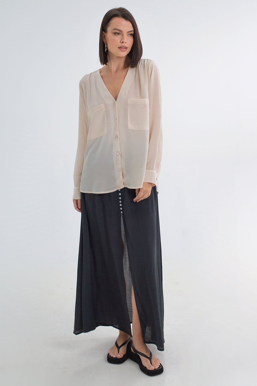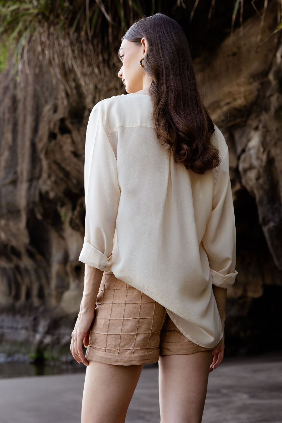 The Aquarella shirt is a must-have in any wardrobe. Crafted from silk crepe, this shirt features two pockets, long sleeves and shell buttons detailing that adds a touch of sophistication to its classic cut .