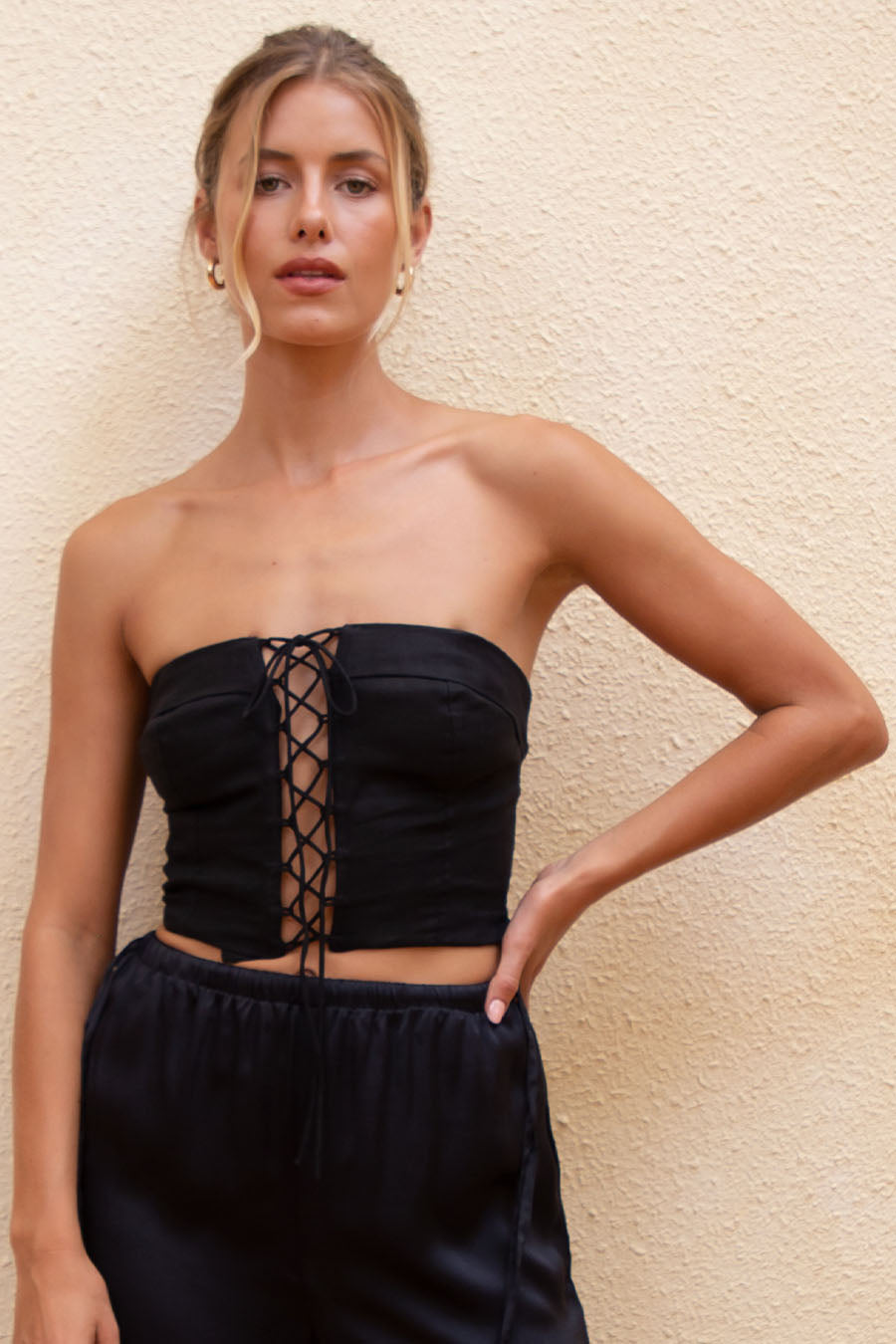 Crafted in 100% breathable linen, the Brisa Top features a criss-cross front closure, a back zipper for an elevated, for an effortless sophisticated look.