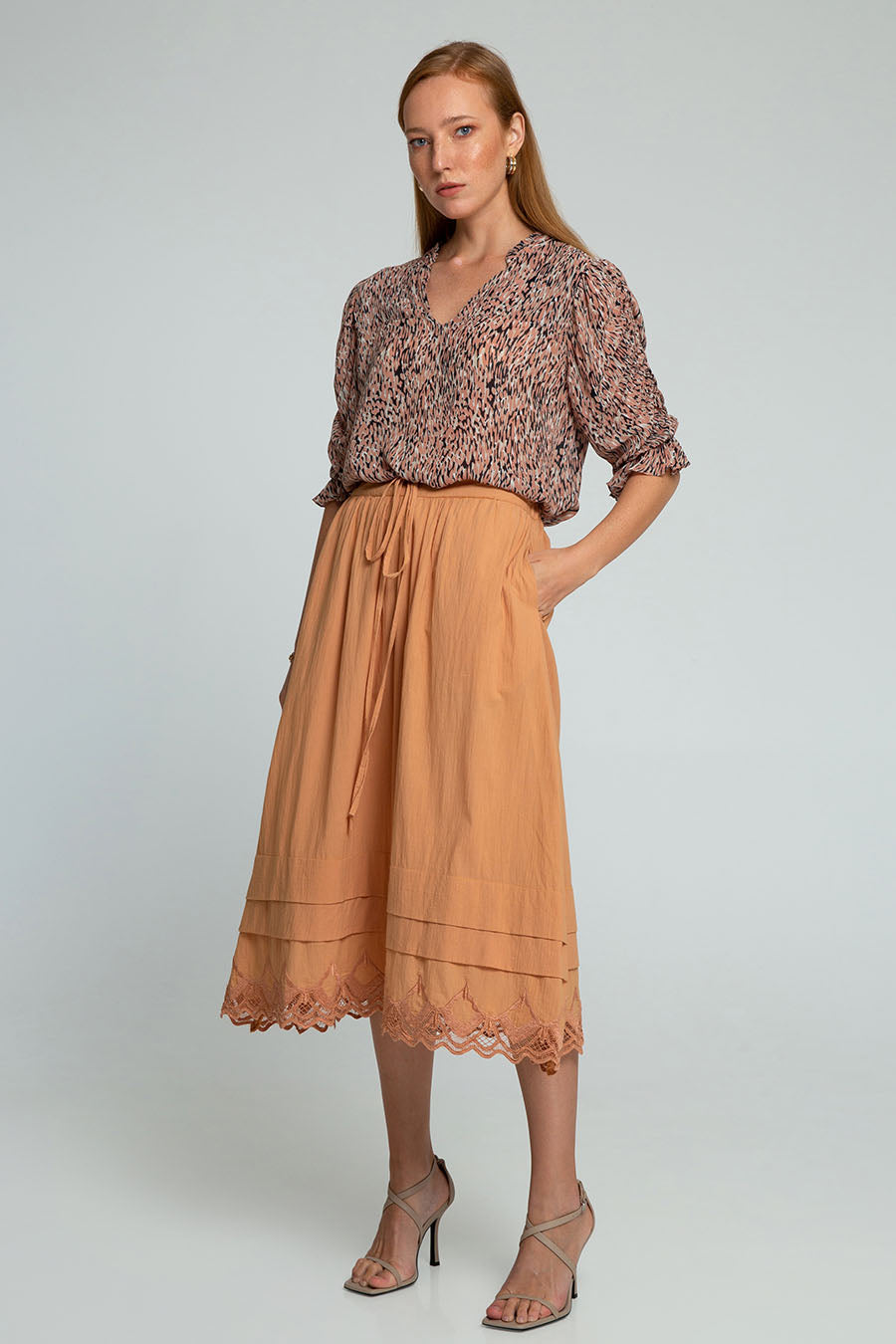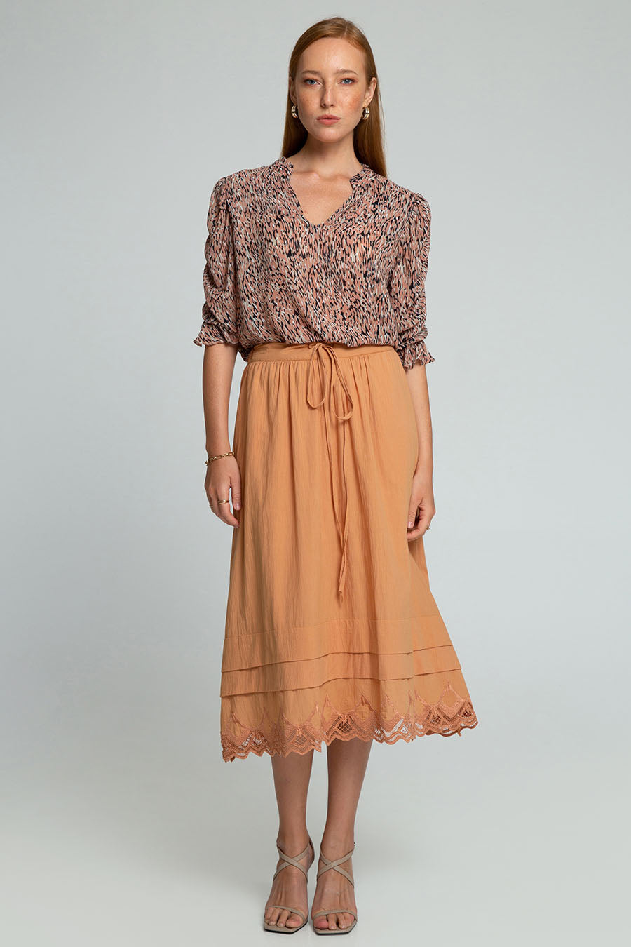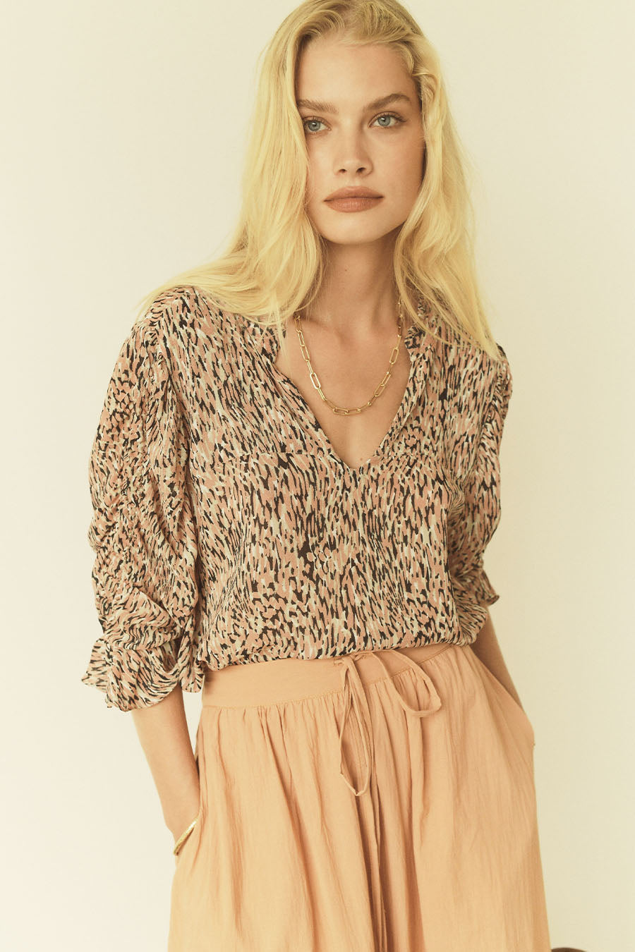 Crafted in rayon, the Louise Top features a v-neckline, elasticated 3/4 sleeves and hand printed abstract print. Match with your pants or with our Kara Midi Skirt for a cool yet feminine and elegant style.