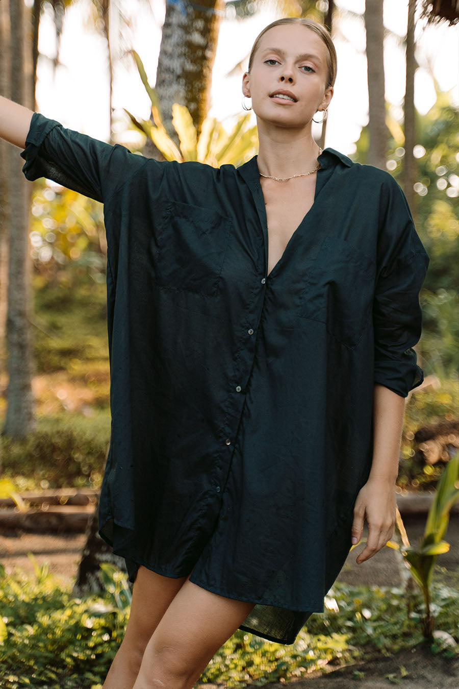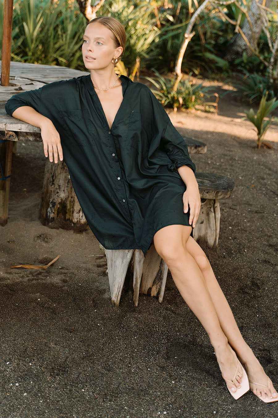Crafted from a soft and slightly sheer cotton voile, The Paz Shirt Dress has 3/4sleeves, shell buttons at the front and oversized statement pockets.