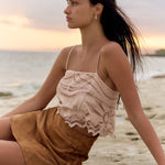The Feather Top is a standout piece from this collection. It features a cropped singlet design, crafted with our exclusive handmade embroidery that adds a distinctive, artisanal touch. Each top is meticulously made by our skilled artisans in Bali, ensuring that every piece is thoughtfully created and truly one of a kind.